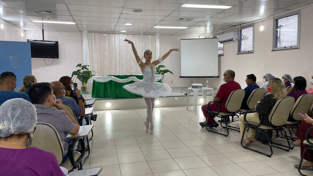 Com a apresentação de uma bailarina, atividade destaca a necessidade de ter equilíbrio mental no dia a dia dos profissionais de saúde