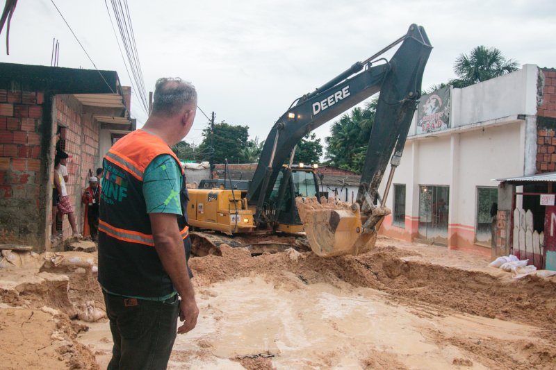 A ação iniciou no último domingo, 12, após as residências da rua Frei Ciro ficarem soterradas pelo desbarrancamento de uma encosta.